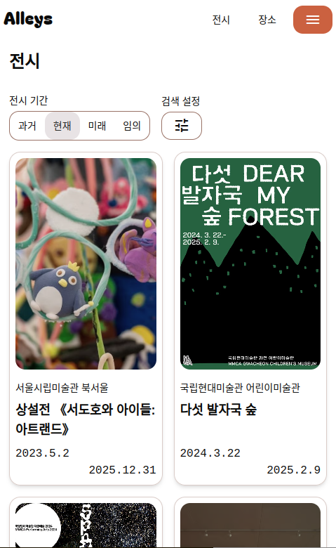전시회 페이지 데이터 | 최대 페이지 수 전시 장소 ID와 이름 리스트 |